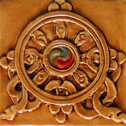 Wheel (Tib. khorlo) Representing the wheel of truth.